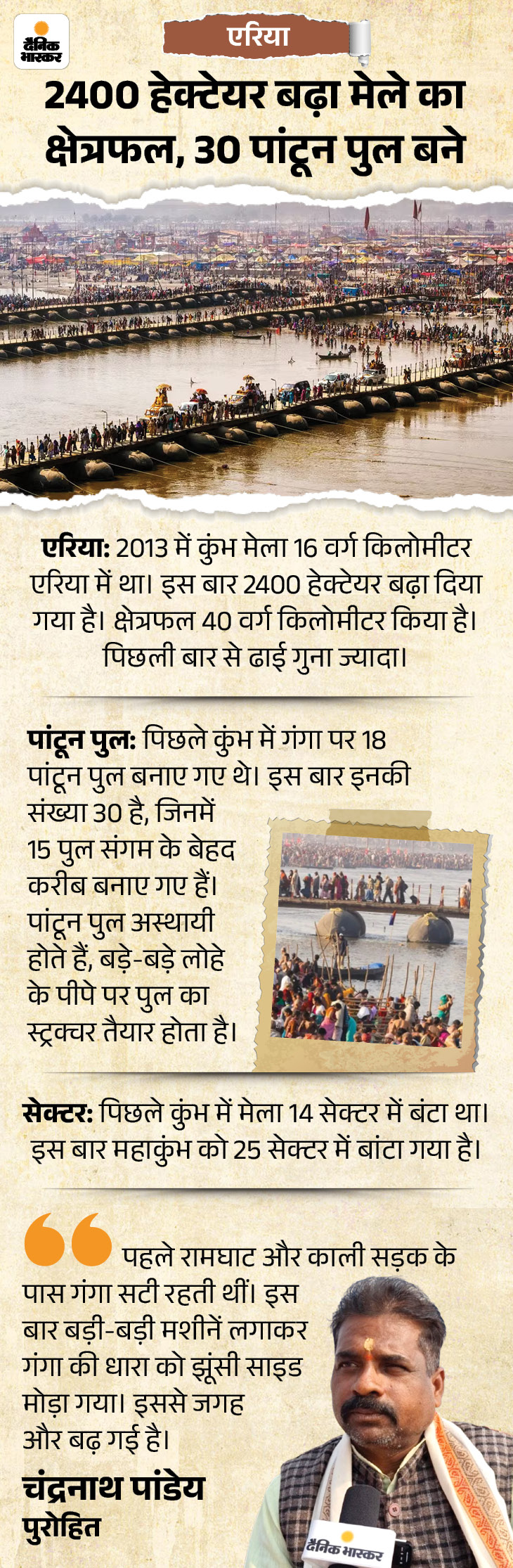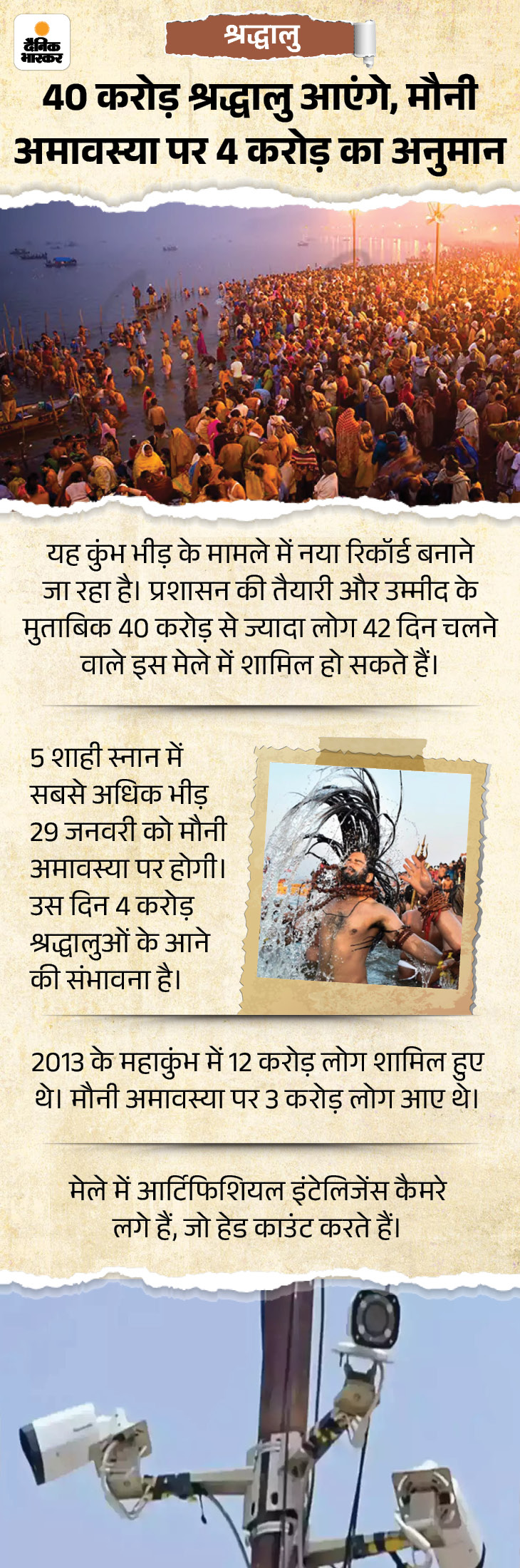 महाकुम्भ जैसे विशाल आयोजन के लिए चुनौतियों से पार पाकर महज 4 महीने में बेहतरीन सुविधाओं वाला शहर बसा दिया गया। 50 दिनों के इस आयोजन में करीब 40 करोड़ श्रद्धालुओं के पहुंचने की उम्मीद है।