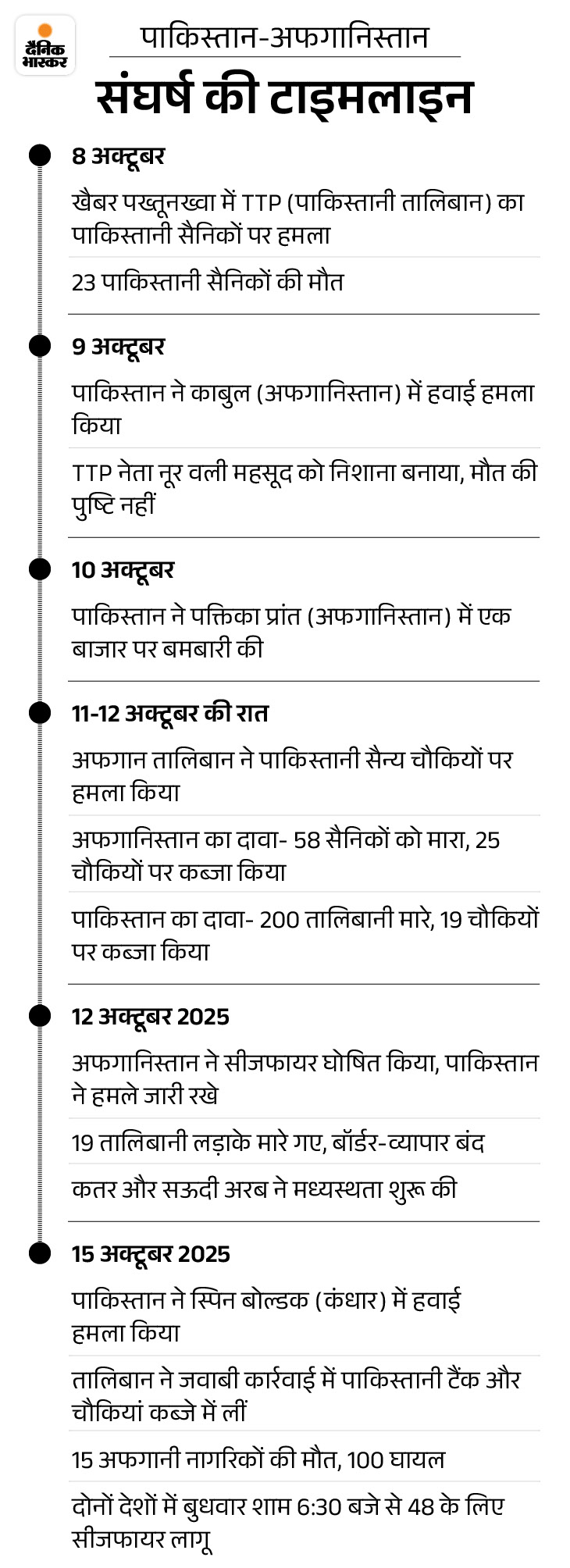 पाकिस्तान और अफगान तालिबान के बीच 8 अक्टूबर से जारी संघर्ष के बाद बुधवार शाम को 48 घंटे के लिए सीजफायर हुआ। वहीं, पाकिस्तान के हमले के बाद अफगानी लोग लड़ाकों के साथ एकजुट हो गए हैं।