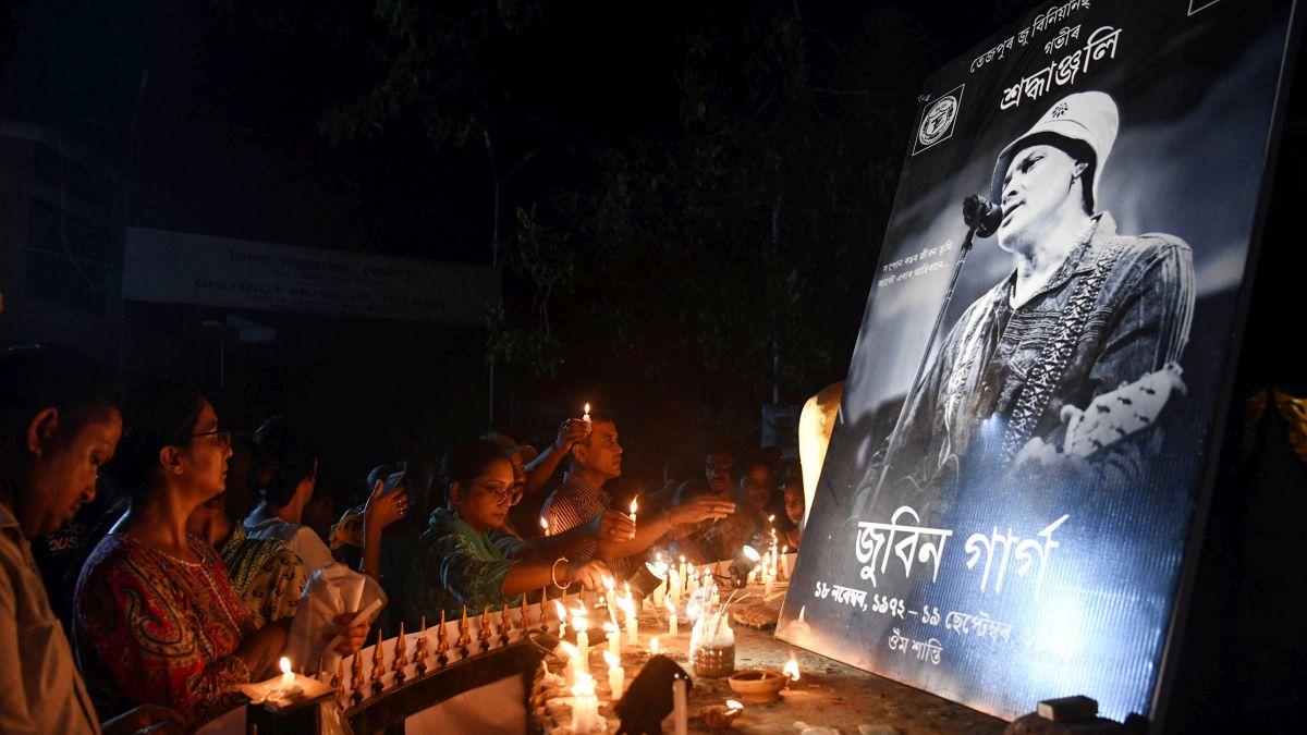 IMAGE: Tezpur people lit candles and pray while demanding justice for Zubeen Garg, in Sonitpur. Photograph: ANI Photo