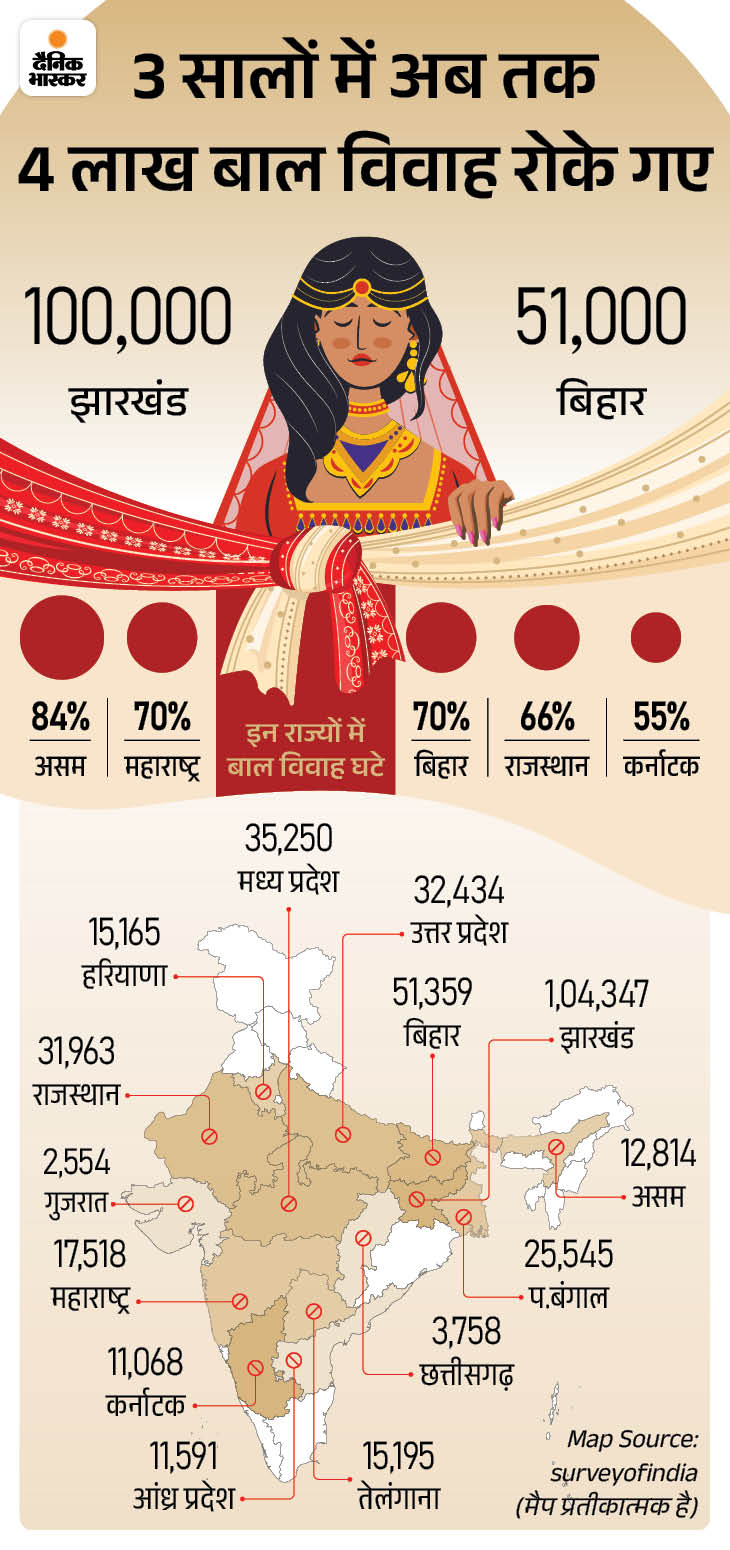 UN में रिपोर्ट- भारत में 2 साल में 4 लाख बाल विवाह रोके; असम में 84%, महाराष्ट्र-बिहार में 70% तक गिरावट