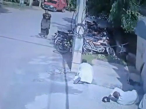वीडियो में दिखता है कि गोली लगने के बाद हमलावर की बंदूक गिर जाती है। वह उसे उठाने की कोशिश करता है। इस दौरान वह गिर जाता है और फिर जमीन पर तड़पने लगता है।
