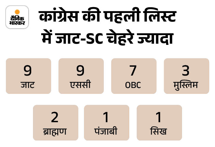 पार्टी ने भूपेंद्र सिंह हुड्डा समेत अपने सभी 28 सिटिंग विधायकों पर फिर से भरोसा जताया है। पहली लिस्ट में 5 महिलाओं और 3 मुस्लिम चेहरों को भी टिकट मिला है।