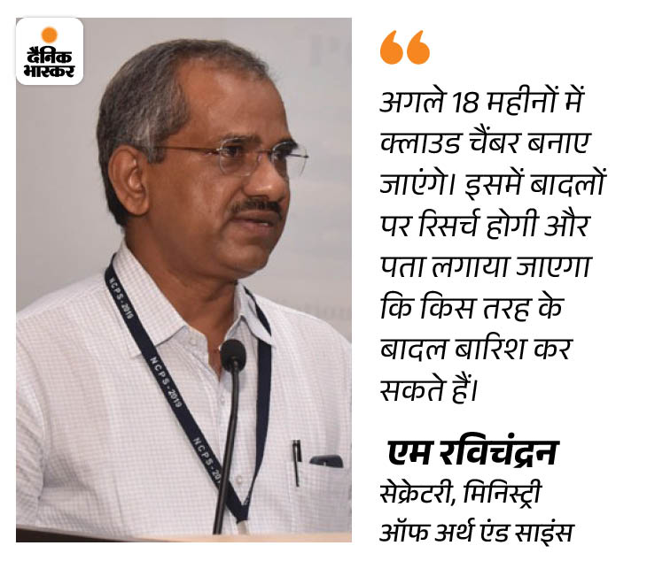 5 साल के भीतर आर्टिफिशियल वेदर मॉडिफिकेशन पर काम होगा एम रविचंद्रन ने आगे कहा कि जहां ज्यादा बारिश की जरूरत होगी बादलों को वहां क्लाउड सीडिंग की जाएगी। 5 साल के भीतर हम आर्टिफिशियल वेदर मॉडिफिकेशन पर काम करेंगे।’