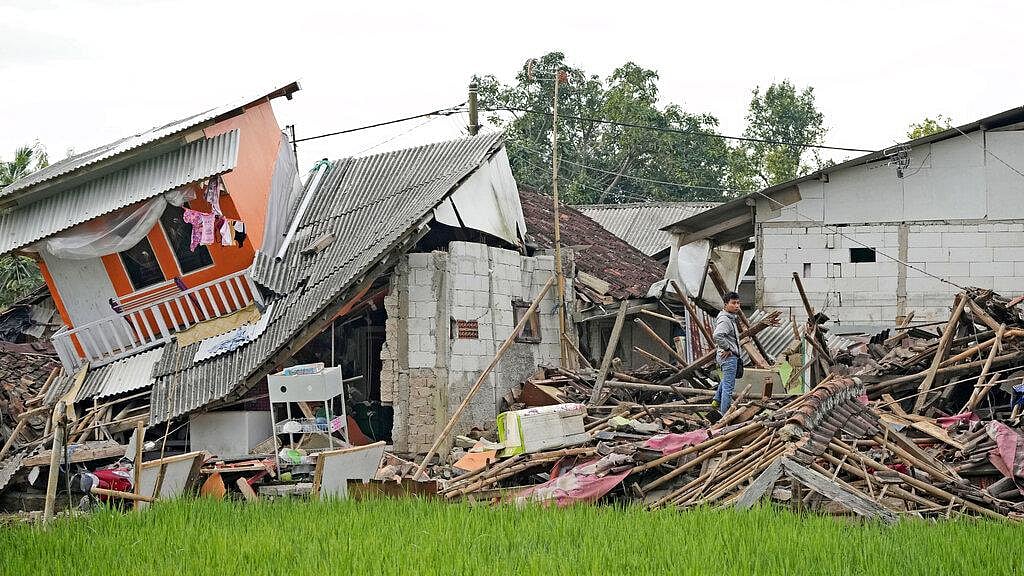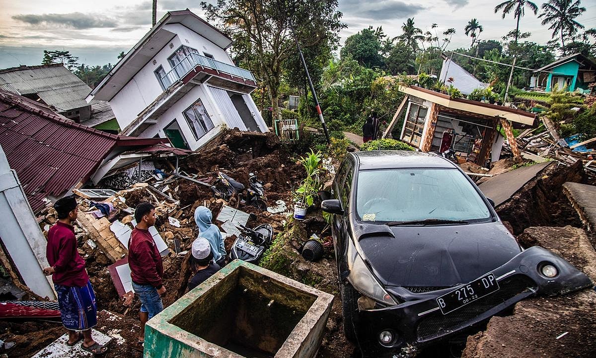 Data from National Disaster Mitigation Agency showed that 100 of the 272 confirmed deaths were children. Monday’s magnitude 5.6 quake injured more than 2,000 people, damaged at least 56,000 houses and displaced at least 62,000 people to evacuation centers and other shelters. The agency said 171 public facilities were destroyed, including 31 schools. (Photo | AP)Indonesian rescuers have narrowed their focus to a landslide where dozens of people were believed trapped after the earthquake. Suharyanto, chief of the National Disaster Mitigation Agency, said the rescuers are planning to use more heavy equipment to search the landslide after using maximum human power. (Photo | AP)Many of the more than 1,000 rescuers were using backhoes, sniffer dogs and life detectors — as well as their bare hands — to search the worst-hit area of Cijendil village in mountainous Cianjur district where a landslide set off by Monday’s quake left tons of mud, rocks and broken trees.While the magnitude would typically be expected to cause light damage to buildings and other structures, experts said proximity to fault lines, the depth of the temblor and buildings not being constructed using earthquake-proof methods were factors in the devastation. (Photo | AP)Some of the dead were students at an Islamic boarding school while others were killed in their homes when roofs and walls fell in on them. ‘The room collapsed and my legs were buried under the rubble. It all happened so fast,’ 14-year-old student Aprizal Mulyadi told AFP. (Photo | AP)The search operations were made more challenging because of severed road links and power outages in parts of the largely rural, mountainous region. (Photo | AP)The country of more than 270 million people is frequently struck by earthquakes, volcanic eruptions and tsunamis because of its location on the arc of volcanoes and fault lines in the Pacific Basin known as the ‘Ring of Fire.’ The area spans some 40,000 kilometers (25,000 miles) and is where a majority of the world’s earthquakes occur. (Photo | AP)In February, a magnitude 6.2 earthquake killed at least 25 people and injured more than 460 in West Sumatra province. In January 2021, a magnitude 6.2 earthquake killed more than 100 people and injured nearly 6,500 in West Sulawesi province. A powerful Indian Ocean quake and tsunami in 2004 killed 230,000 people in a dozen countries, most of them in Indonesia. (Photo | AP)People ride a motorbike past a building damaged in Monday’s earthquake in Cianjur, West Java, Indonesia. (Photo | AP)Those who survived camped outside in near-total darkness surrounded by fallen debris, shattered glass and chunks of concrete. At a shelter in Ciherang village near Cianjur, evacuees sat on tarpaulins stretched over the cold morning ground. (Photo | AP)Doctors treated patients outdoors at makeshift wards after the quake, which was felt as far away as the capital Jakarta. (Photo | AP)A six-year-old boy was pulled from the rubble after spending two days trapped under debris without food or water, in a ‘miracle’ rescue, captured on camera. It revived hopes that survivors could still be pulled alive from the wreckage. (Photo | AP)More than 2.5 million people live in Cianjur district, including about 175,000 in its main town, which has the same name. (Photo | AP)President Widodo has pledged to rebuild infrastructure and provide assistance of up to 50 million rupiah ($3,180) to each resident whose house was damaged. (Photo | AFP)Indonesian President Joko Widodo who visited Cianjur on Thursday said rescuers will focus on one location where 39 people are missing. (Photo | AFP)
