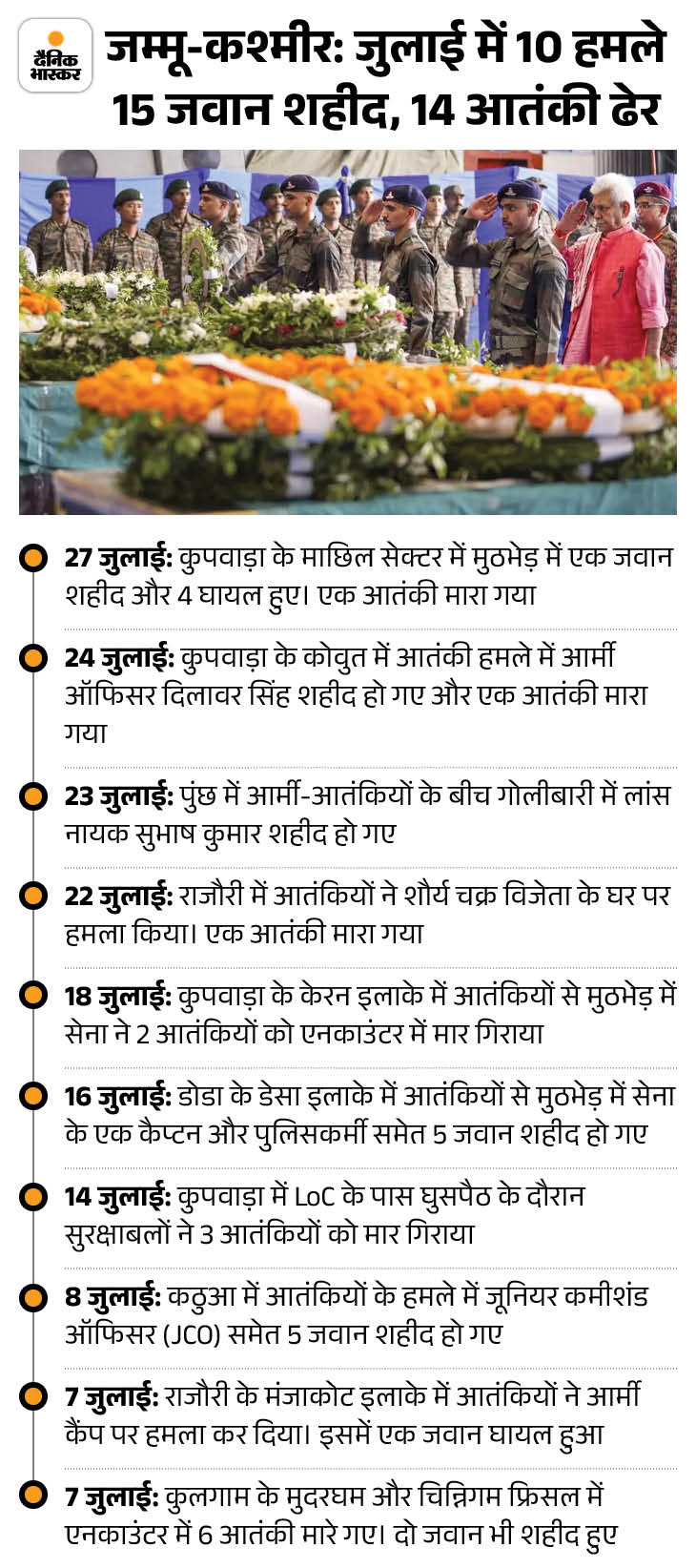 जम्मू-कश्मीर में जुलाई महीने में 10 से अधिक आतंकी हमले हुए।