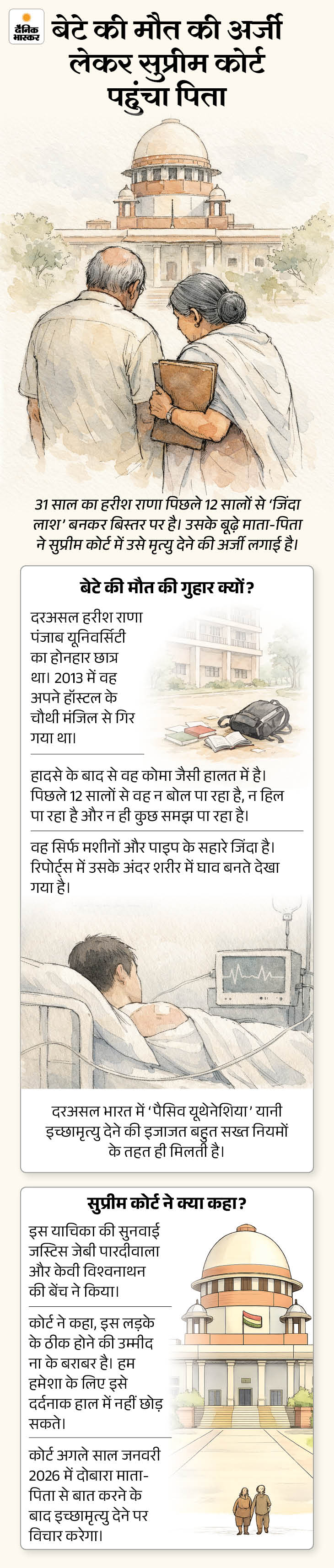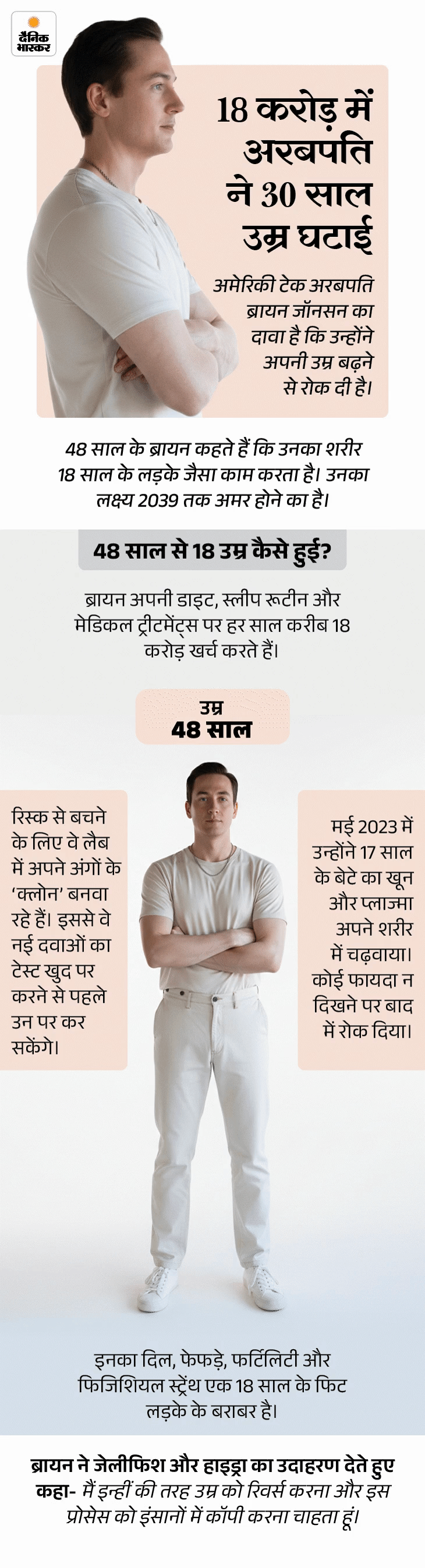 अमेरिकी अरबपति ब्रायन जॉनसन हर साल 18 करोड़ रुपए खर्च कर अपनी 30 साल उम्र घटा ली। वहीं एक पिता अपने बेटे को मौत दिलाने की अर्जी लेकर सुप्रीम कोर्ट पहुंच गया। उधर होमगार्ड भर्ती में एक हवाई पट्टी को ही एग्जाम सेंटर में बदल दिया गया।