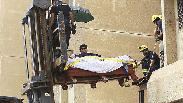 फोटो 2013 की है। इलाज के लिए खालिद को उनके घर से स्पेशल क्रेन से निकाला गया था।