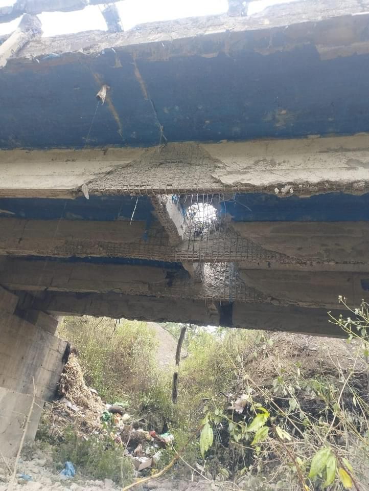 विस्फोट के बाद पुल पर बड़े-बड़े छेद हो गए।