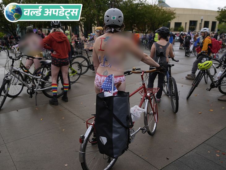 ट्रम्प प्रशासन के खिलाफ अमेरिका के पोर्टलैंड में लोगों ने अनोखा विरोध किया। सैकड़ों लोग बिना कपड़ों या बेहद कम कपड़ों में साइकिल लेकर सड़कों पर उतर आए। बारिश और ठंड के बीच यह रैली ‘वर्ल्ड नेकेड बाइक राइड’ के तहत निकाली गई।