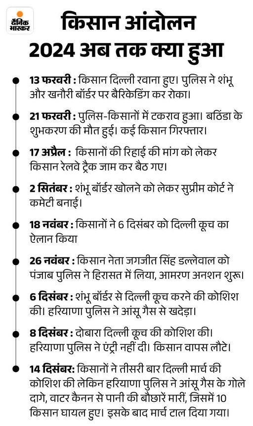 1. फसलों के न्यूनतम समर्थन मूल्य (MSP) की गारंटी के कानून को लेकर 13 फरवरी 2024 से शंभू बॉर्डर पर किसान आंदोलन चल रहा है। इसके अलावा खनौरी बॉर्डर पर भी किसान आंदोलन पर बैठे हैं।