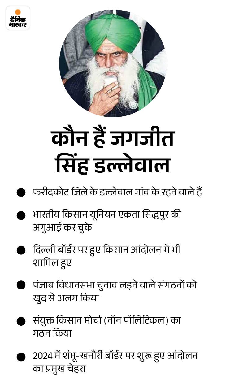1. 13 दिसंबर को कहा– तत्काल डॉक्टरी मदद दें डल्लेवाल 26 नवंबर को अनशन पर बैठे थे। 13 दिसंबर को सुप्रीम कोर्ट में जगजीत डल्लेवाल के आमरण अनशन को लेकर सुनवाई हुई। जिसमें सुप्रीम कोर्ट ने पंजाब और केंद्र सरकार को कहा कि डल्लेवाल को तत्काल डॉक्टरी मदद दें। उन्हें जबरन कुछ न खिलाया जाए। आंदोलन से ज्यादा उनकी जान जरूरी है। इसके बाद पंजाब के डीजीपी गौरव यादव और केंद्रीय गृह निदेशक मयंक मिश्रा ने खनौरी बॉर्डर पहुंचकर उनसे मुलाकात की।