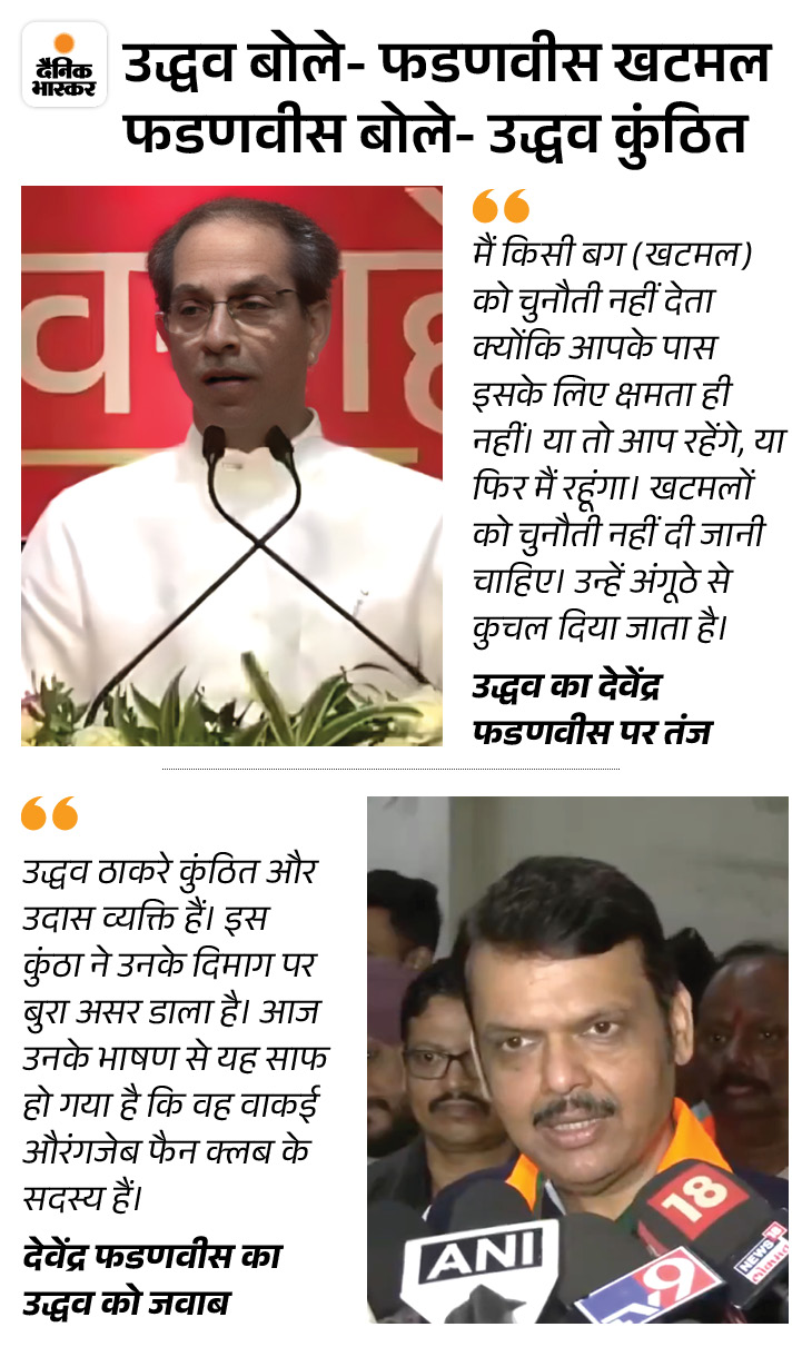 3 अगस्त, उद्धव ठाकरे: अगर मुसलमान हमारे साथ हैं, तो हम उन्हें अपना हिंदुत्व समझाएंगे। तब हम ‘औरंगजेब फैन क्लब’ होंगे, लेकिन जो आप कर रहे हैं, वह सत्ता जिहाद है। ठाकरे ने आगे कहा- भाजपा के सहयोगी नीतीश कुमार, चंद्र बाबू नायडू हिंदुत्व वादी व्यक्ति हैं क्या? अमित शाह बताएं उनका हिंदुत्व कैसा है? गृह मंत्री को संघ का हिंदुत्व मान्य है क्या? इस वजह से भाजपा ने जो शुरू किया है वह पावर यानी सत्ता जिहाद है।